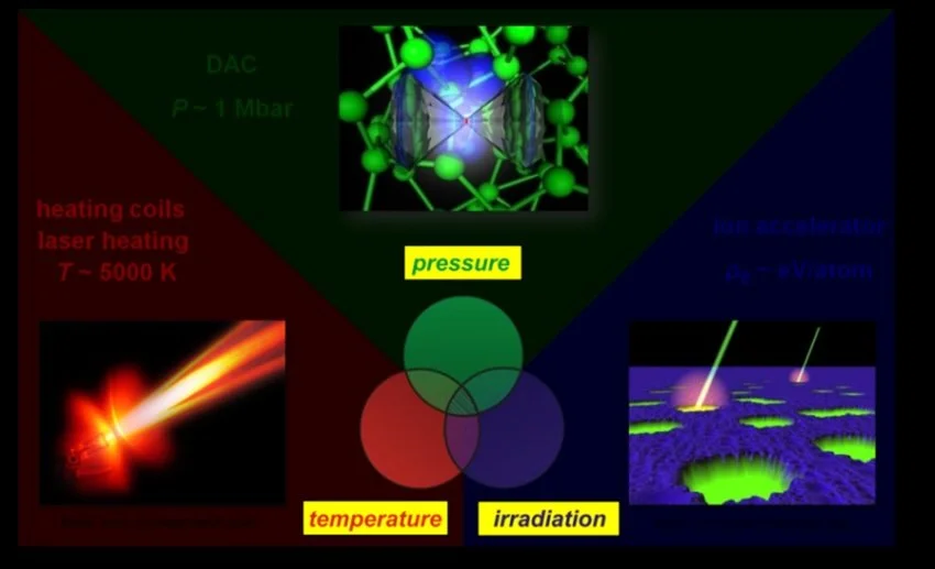 CDAC’s key strategy to investigating the response of materials to the coupled extreme conditions of P, T, and ion irradiation.