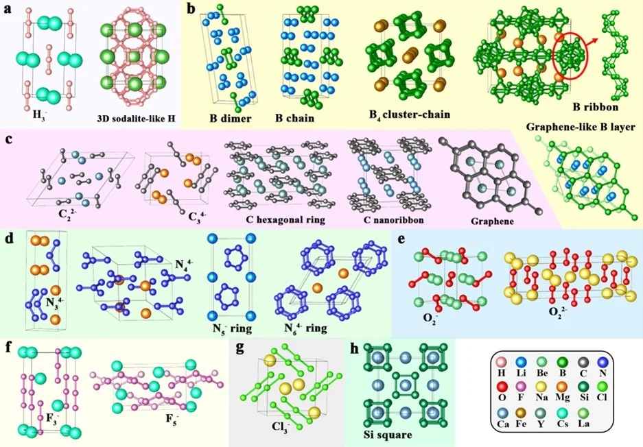 Examples of the novel structures and bonding that emerge at extreme pressures, specifically selected homonuclear species present in atypical high-pressure compounds [Miao et al., Nature Chem. Rev. 4, 508-527 (2020)]